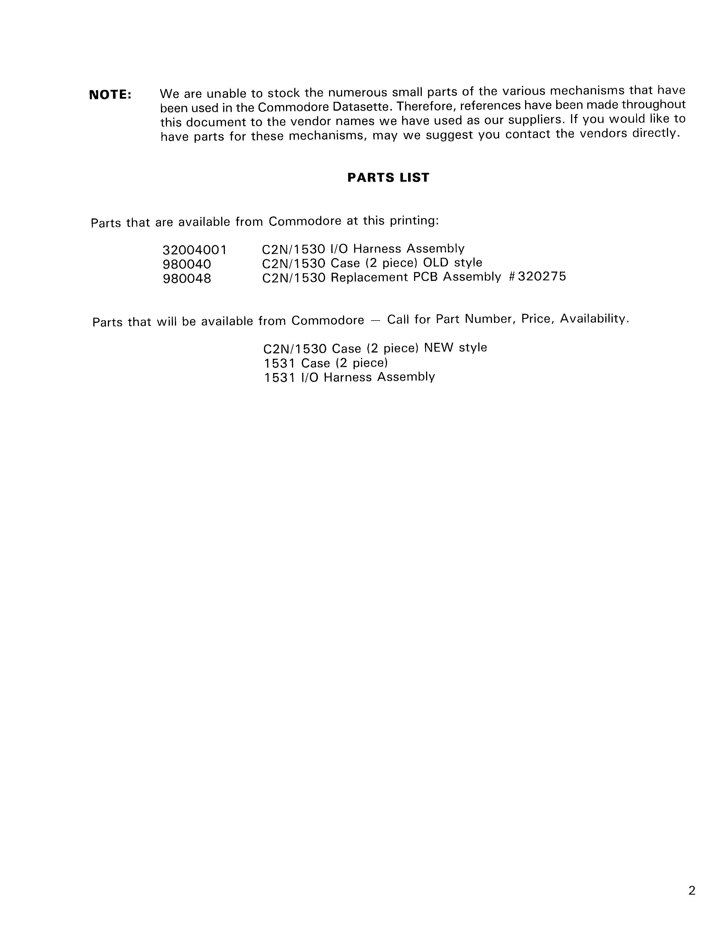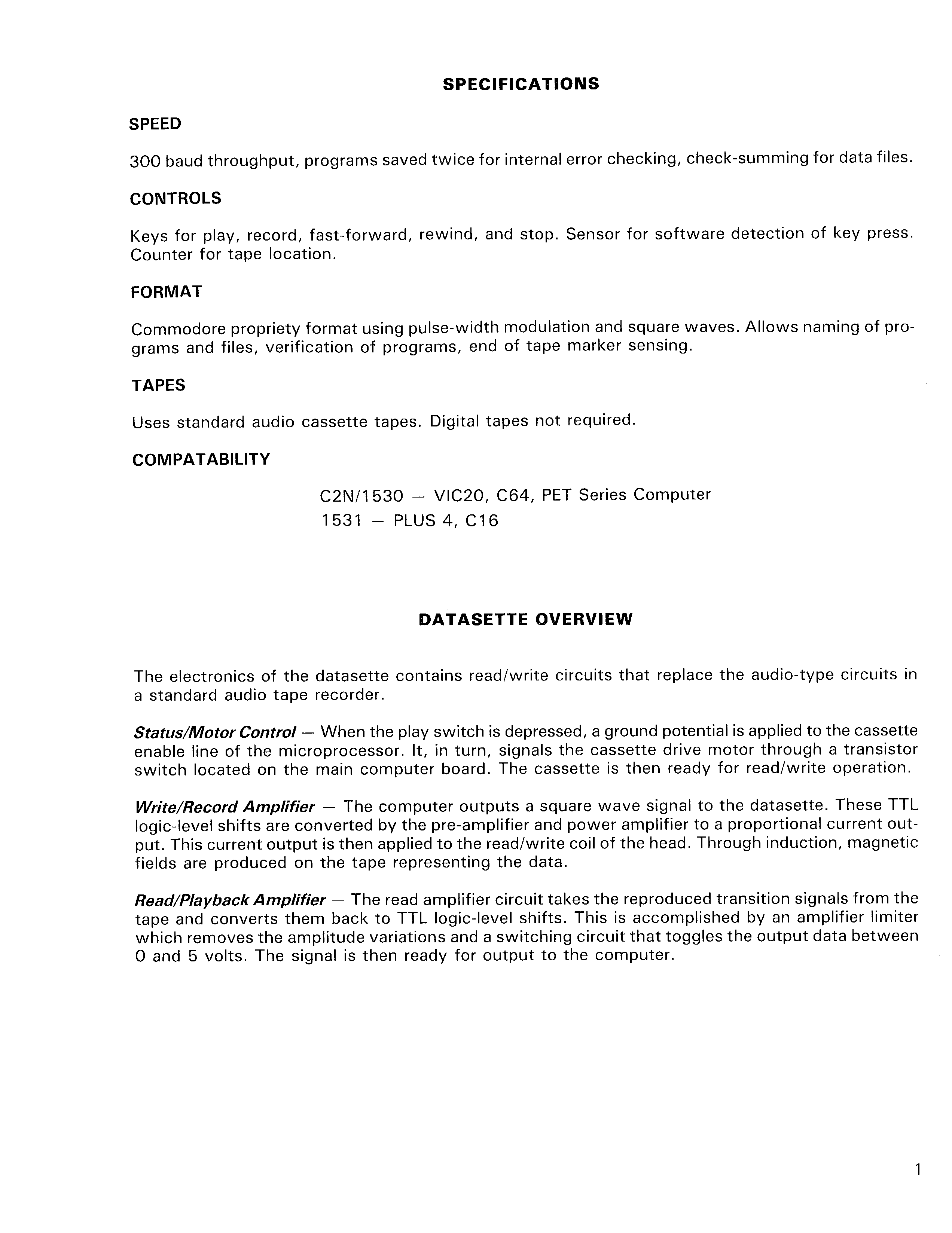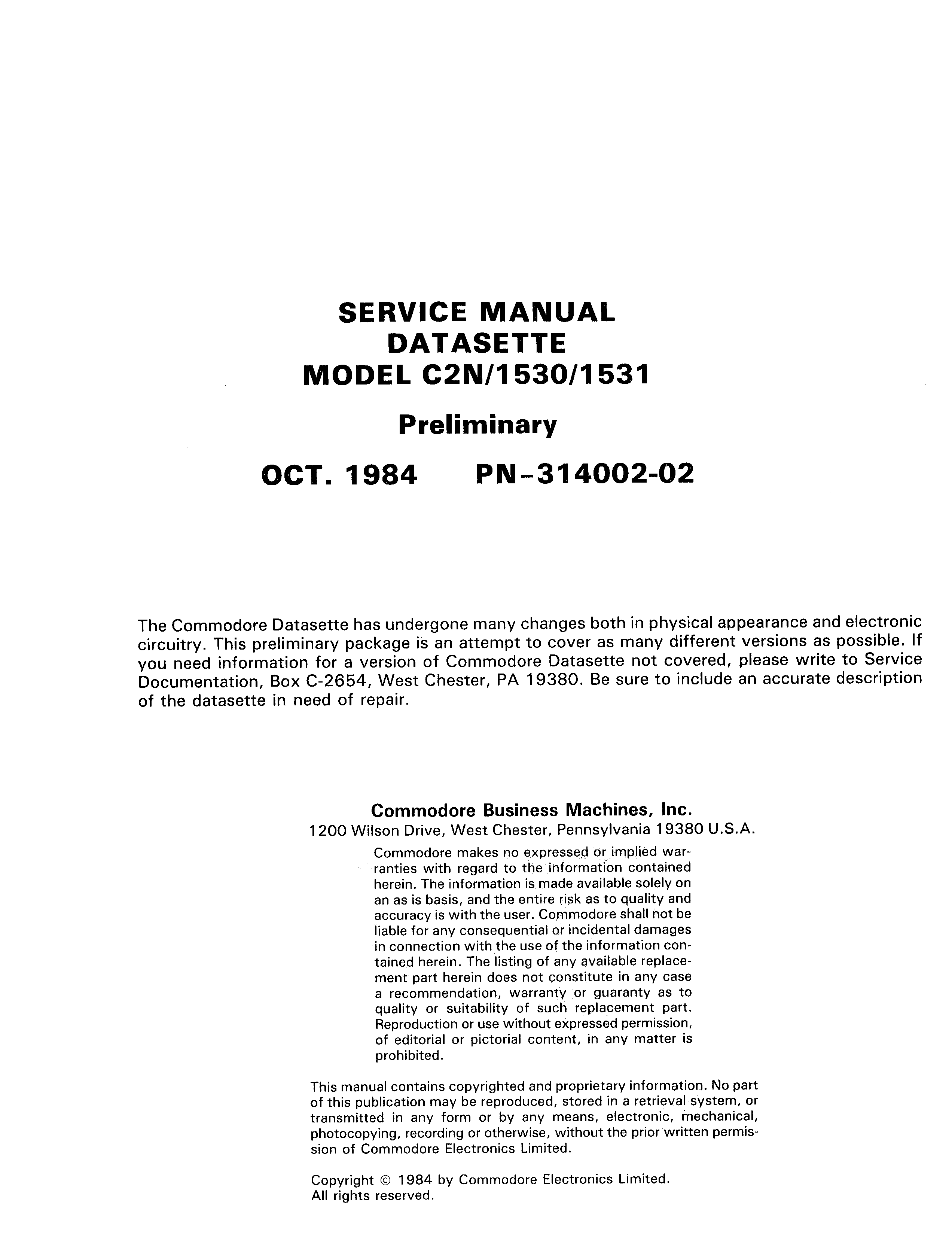 Datasette service manual model C2N/1530/1531, preliminary, Oct. 1984