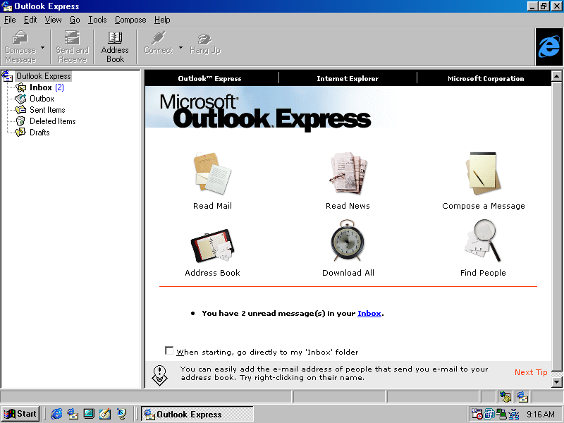 Zum Internet Explorer gehörte auch Outlook Express, eines der meistgenutzen Email Programme der Welt, obwohl es relativ unsicher war und kaum Funktionen bot.